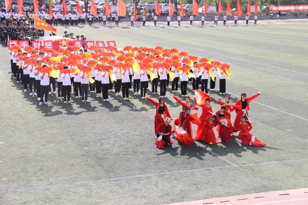 恰同学少年,风华正茂;逞飒爽英姿,青春激扬。开幕式上,公司教师和员工共同组建的方队迈着铿锵有力的步伐,精神抖擞、斗志昂扬地通过主席台,拉开了本届运动会的序幕。伴随《小河淌水》的旋律,公司方队同学手持舞扇,有序的聚散、跑位,一幅象征青年意义的“5.4”图案呈现在绿荫场上,艺术团成员身穿红裙翩翩起舞,尽显优雅与灵动,舞扇的翻转与红袖的飞扬完美融合,如诗如画,美不胜收。红白默契的配合,为开幕式增添了一抹属于体育365官网的亮丽色彩。