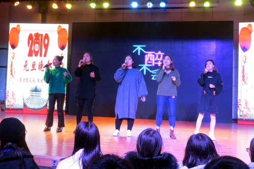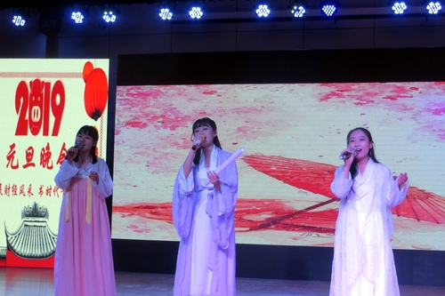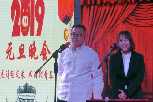 2018年12月24日晚,公司2019年元旦晚会在老楼多功能厅举行,晚会的主题是“展财经风采,书时代青春”。公司领导、老师和300名员工欢聚一堂,辞旧迎新。