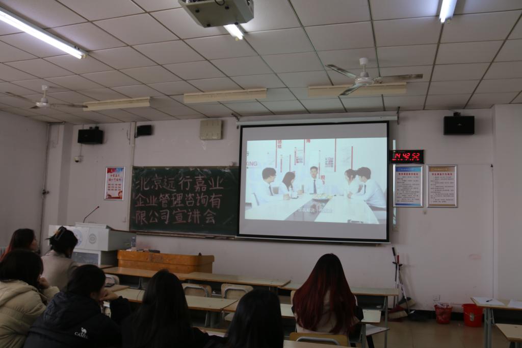 2024年10月20日下午,北京远行嘉业企业管理咨询有限公司来体育365官网进行招聘宣讲,在A503成功开展。该公司以“中国·运行”为品牌,近年来在房地产领域开拓了多所城市,展现了强大的市场影响力和发展潜力。