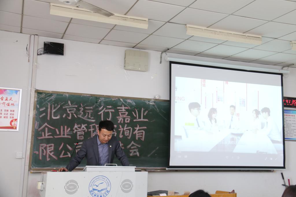 会议伊始,公司代表首先详细介绍了北京远行嘉业企业管理咨询有限公司的发展历程、业务范围和企业文化。随后,公司代表着重介绍了本次招聘的岗位需求和职业发展路径。并表示,公司注重自主培养人才,实行扁平化管理给予人才广阔的晋升空间。此外,公司还积极投身公益事业,通过“运行爱·公益”项目为需要帮助的儿童捐赠物资,支持特殊教育小学的发展,致力于打造一个“有温度”的企业。活动的最后,代表们介绍加入公司的具体流程,为即将毕业的学子们带来了广阔的职业发展机遇。