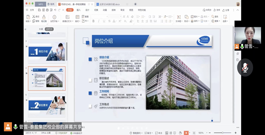 会议中主持人对公司情况、岗位工作职责、职位要求、薪酬福利等相关内容做出介绍。据悉,本次招聘岗位为北京市12345热线服务工作人员。12345热线前身是北京市市长电话,成立于1987年,2007年更名为北京市非紧急救助服务中心,现有千名员工。12345热线是适应首都社会发展和满足公众需求而建立的城市综合信息服务平台,实现了电话、网络、微博等多渠道综合服务,满足不同群体表达意见建议的需求。