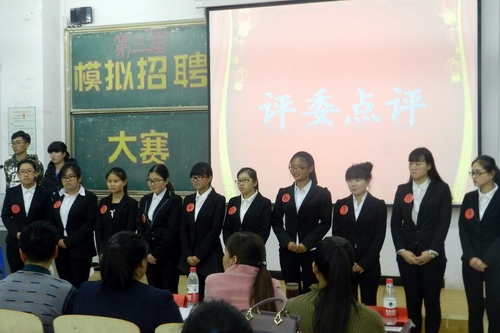 决赛中,通过初赛选拔的10位选手首先逐个登台比拼,提交个人简历,角逐心仪职位,答辩评委疑问,展示个人风采。评委老师兼任企业招聘负责人,针对企业具体岗位针对选手进行招聘评估和考察。经过激烈的角逐,财务会计教育专业16级贾晓雅、财务会计教育专业15级张玉琨、财务管理专业16级李炜然获得最佳优胜奖。场上选手表现精彩,场下观众不时报以热烈掌声。(编审:李宝文)